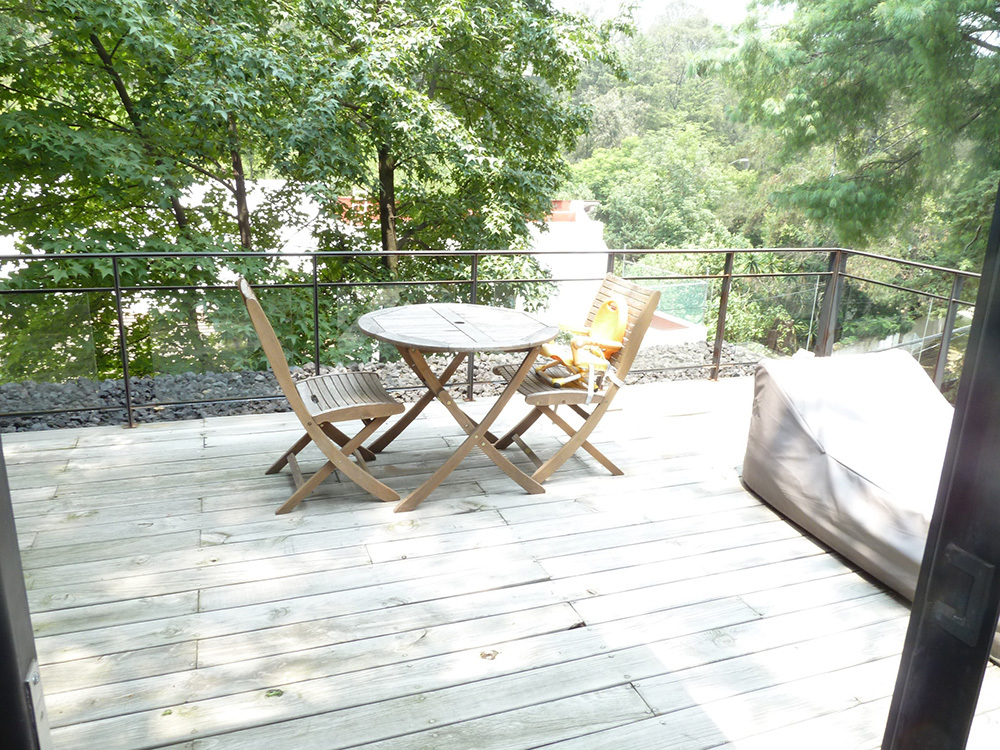 Extraordinaria casa en calle cerrada, rodeada de bosque, estancia sala, comedor, baño de visitas, amplia cocina abierta, terraza grande descubierta con una parte techada, recámara 1 con closet y baño, subiendo, recámara principal muy amplia con espacio para sala de t.v., terraza, vestidor, baño, área de lavado y cuarto de servicio con baño, bodega y 2 lugares de estacionamiento cubiertos.