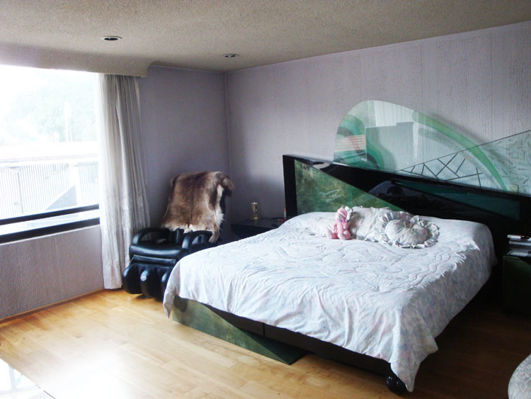 Pared de piedra de mármol, Sala de t.v. con doble altura, Techo de madera en 4 aguas, Recámara 1, la principal, vestidor con tragaluz y baño con regadera, Recámara 2, con vestidor y baño con regadera, Closet de blancos, Recámara 3, con techo de madera, con vestidor y baño con regadera