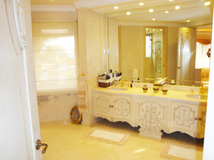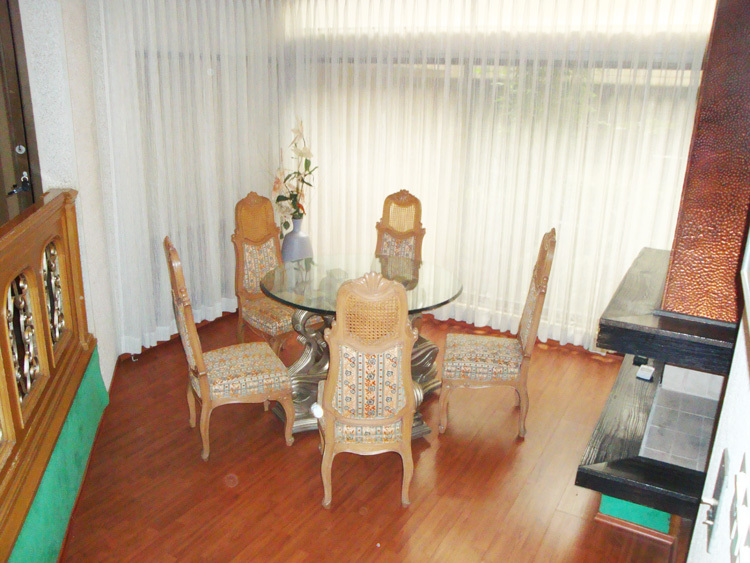 Pisos en madera de nogal y mármol, Sala, Biblioteca, Comedor grande, terraza y asador, Pantry con una despensa, Cocina Italiana, Baño de visitas, Ante comedor con salida a otra terraza y al jardín, Escalera de mármol, Sala T.V., 3 Recámaras la principal con piso madera y mármol, Baño principal con jacuzzi, regadera y vestidor muy grande Recámaras 2 y 3 con vestidor y baño, Cuarto de lavado y de servicio, Cuarto de juegos, estacionamiento para 6 autos, 2 Bodegas, Cuarto de chofer.