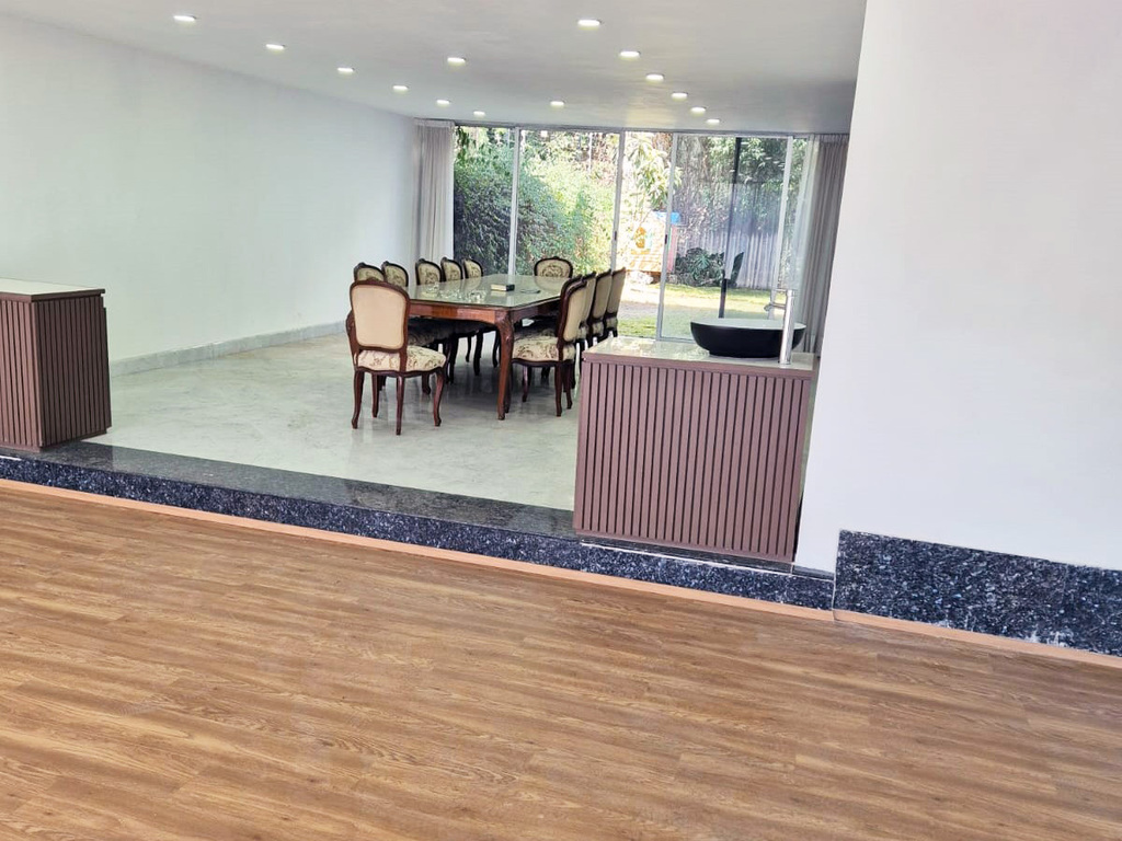 Excelente casa con una distribución muy cómoda entre áreas sociales, privadas y de servicio. Cuenta con sala, comedor, family room, antecomedor, oficina, baño de visitas y una cocina completamente nueva. Todo con salida o vista hacia un amplio jardín, ideal para disfrutar en familia o con invitados.