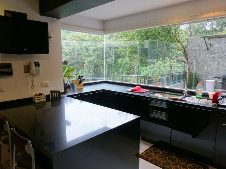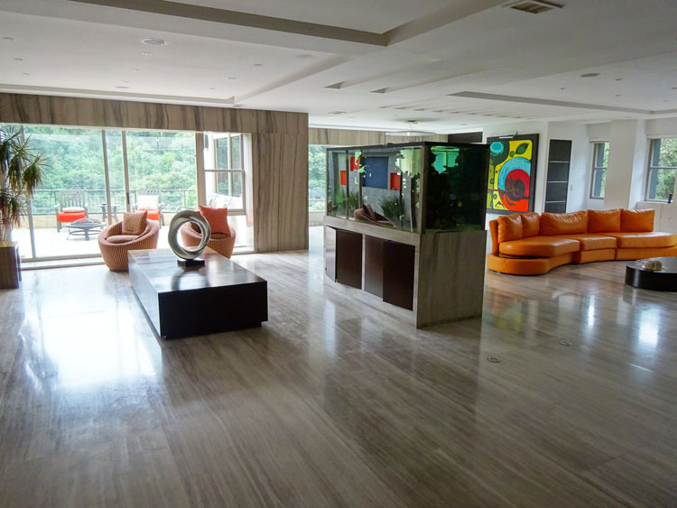 Entrada principal baño de visitas, Estancia muy grande con sala y Family Room, Comedor, 2 terrazas 120 m2, una muy grande con cascada, asador y sillas, Cuarto especial que sale a la terraza con cascada con televisión y baño completo, Cocina muy amplia con 2 refrigeradores, despensa, Cuarto de servicio, Cuarto de lavado