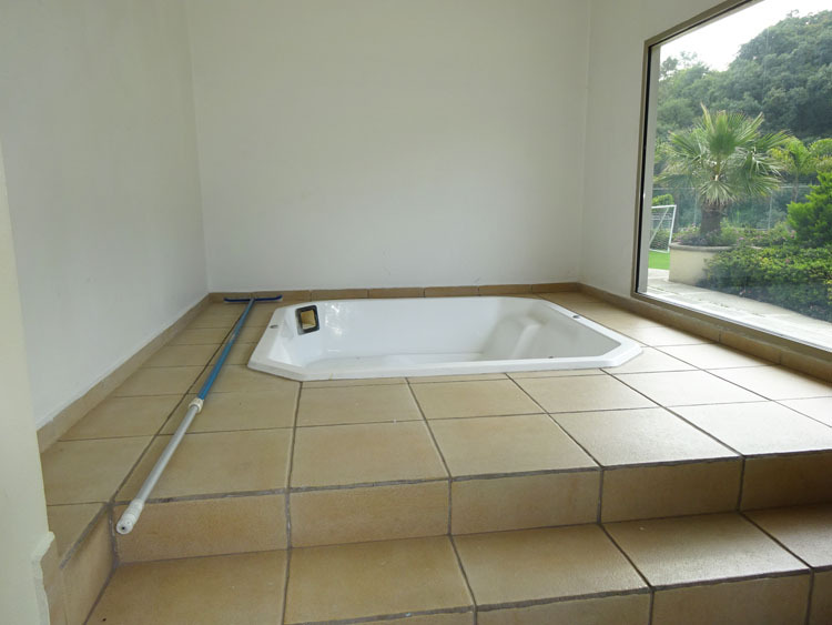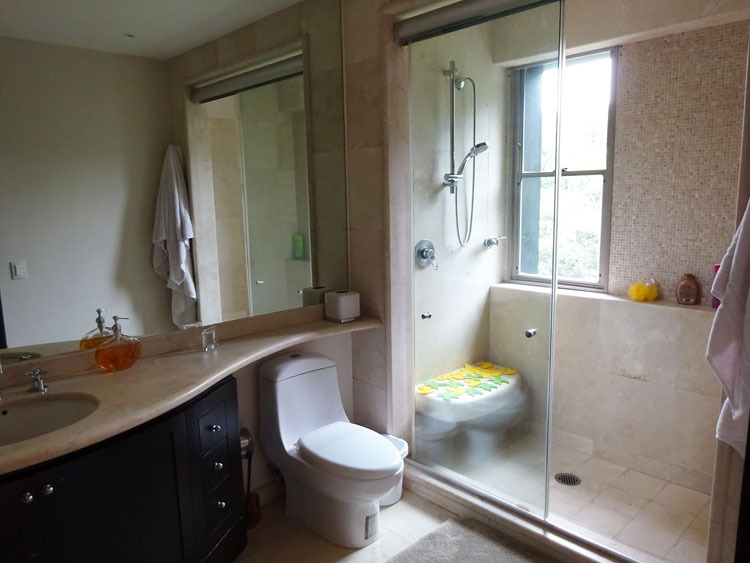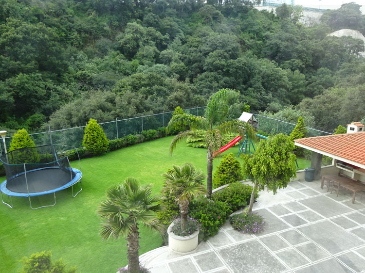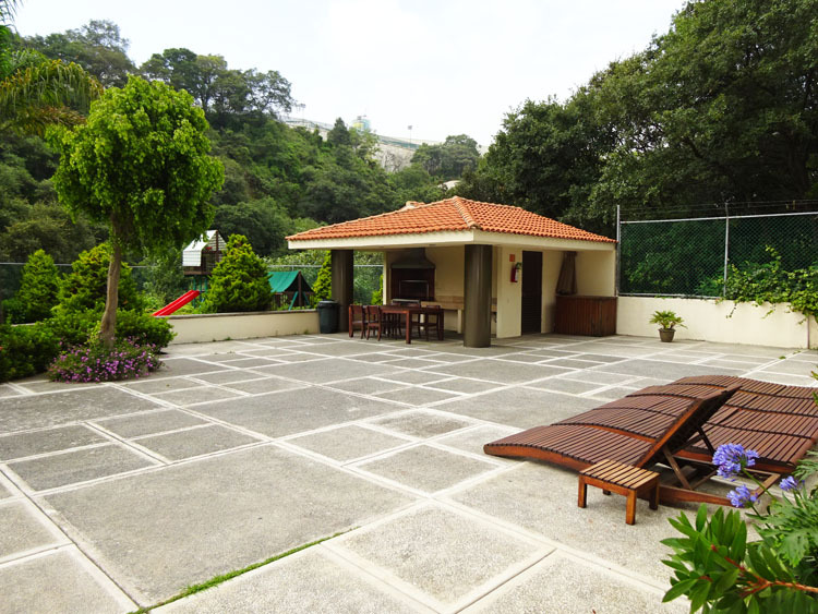 Áreas comunes: alberca cubierta, gimnasio, salón de fiestas, jardín muy grande, juegos para niños, cancha de tennis y baños.