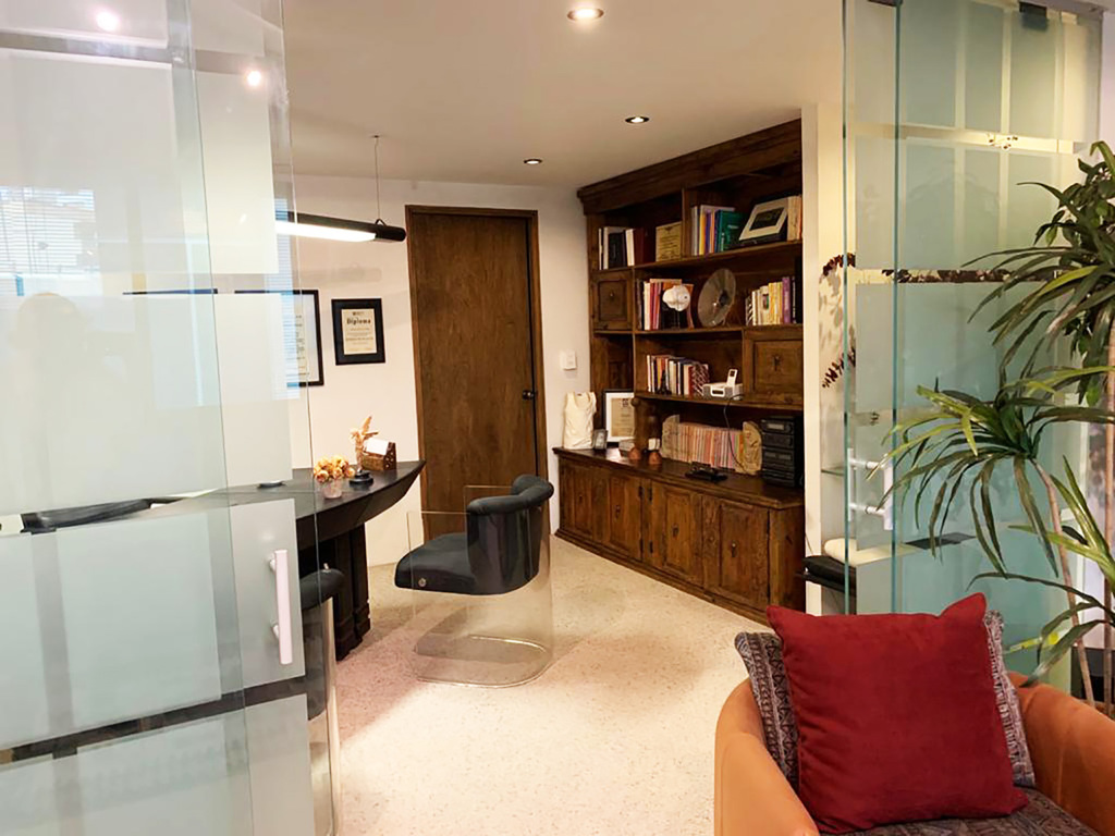 Muy agradable oficina a dos cuadras de Palmas y Periférico, amueblada y decorada, área de recepción, oficina, baño, estacionamiento para 1 coche con opción a otro y bodega.