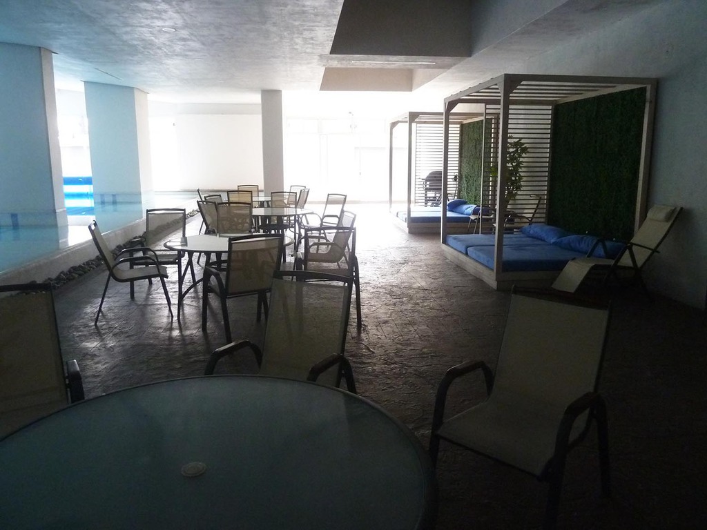 Áreas comunes: Jardín con asador, alberca cubierta con baños y terraza, cine, salón de fiestas con cocina, salón de adultos, ludoteca, juegos infantiles, gimnasio, baños con regaderas, vigilancia 24/7.