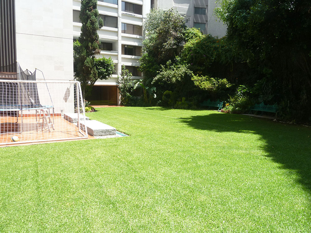 Edificio de 6 pisos, con precioso jardín, 2 salones de fiestas con cocina y baños. Seguridad 24/7, 1 departamento por piso.