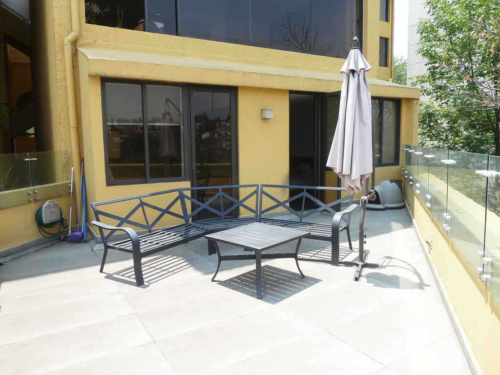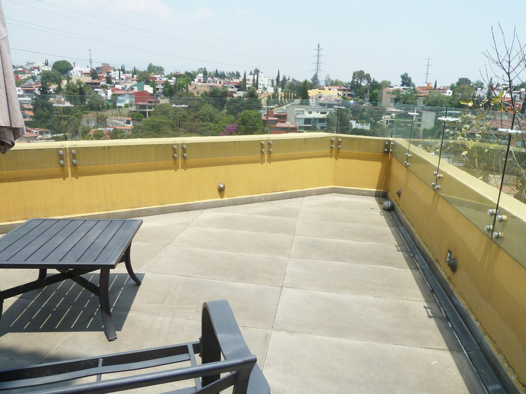 Excelente departamento en 2 niveles con excelente terraza de 24 m2, estancia sala, comedor, baño de visitas, cocina muy amplia con isla y gran despensa, family room, 4 recámaras, 3 de ellas con closet, comparten un baño completo, la 4ta recámara, la principal con amplio vestidor y baño, la recámara principal y otra de las recámaras tienen acceso a la terraza con extraordinaria vista, área de lavado, cuarto de servicio con baño, bodega y 2 cajones de estacionamiento.