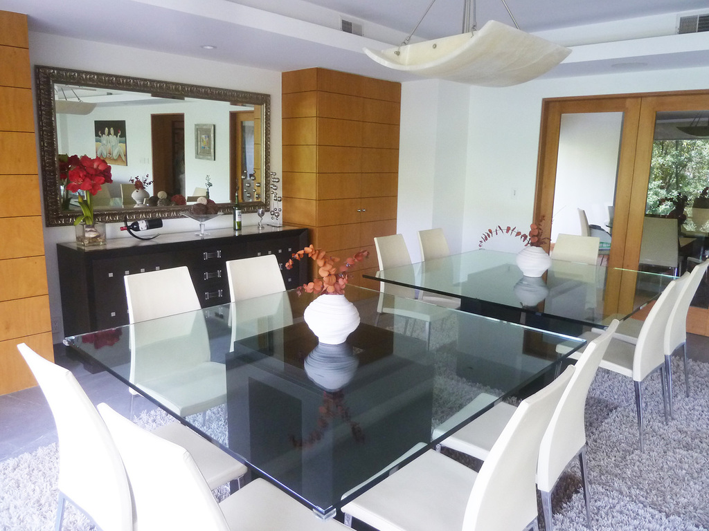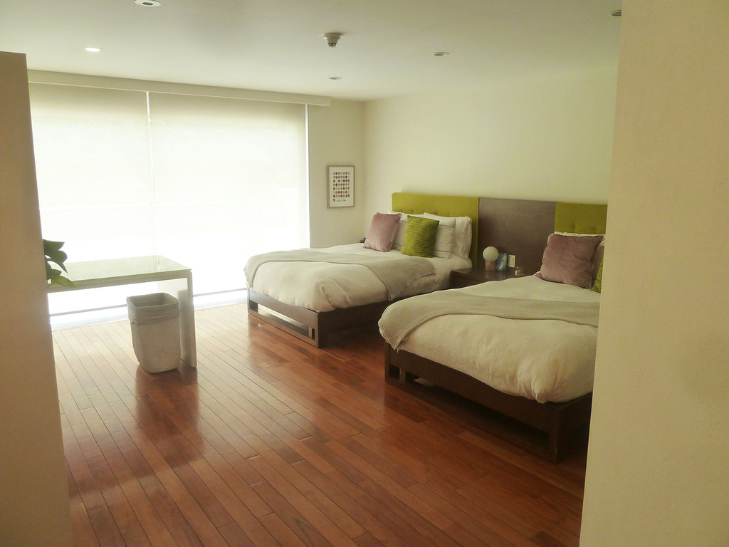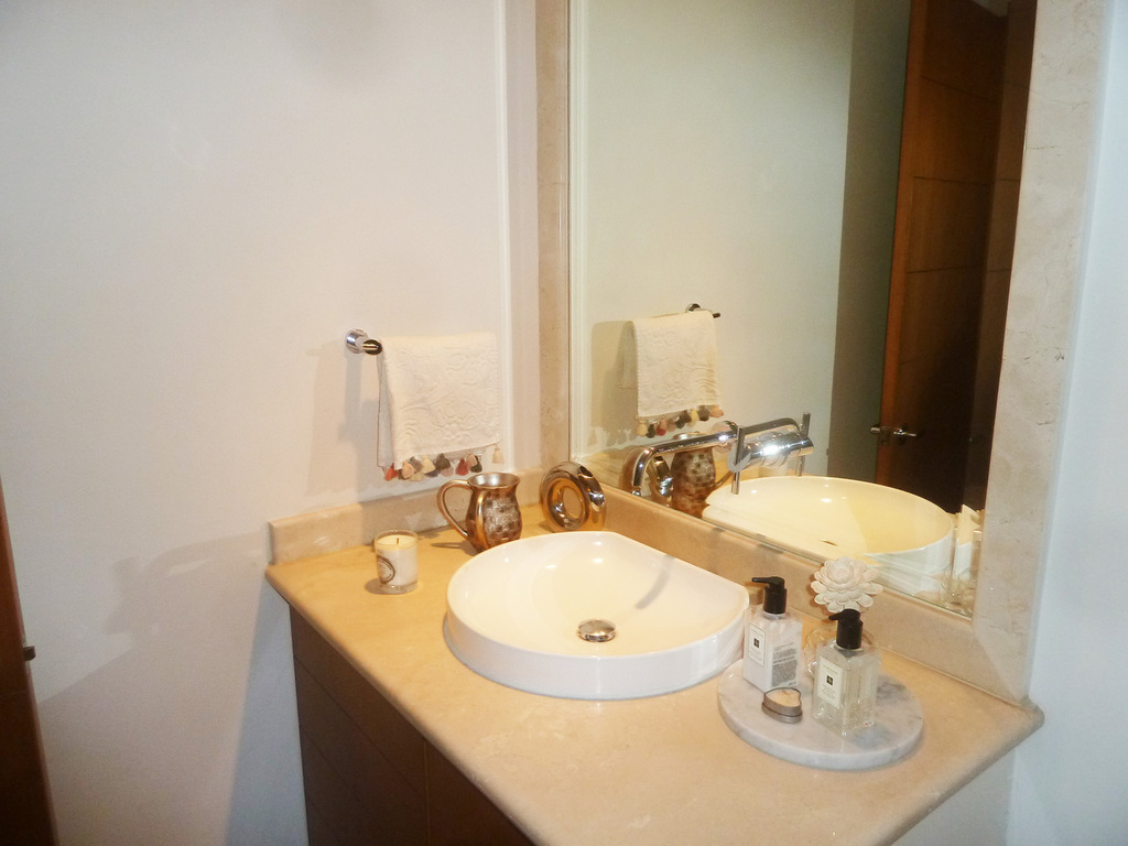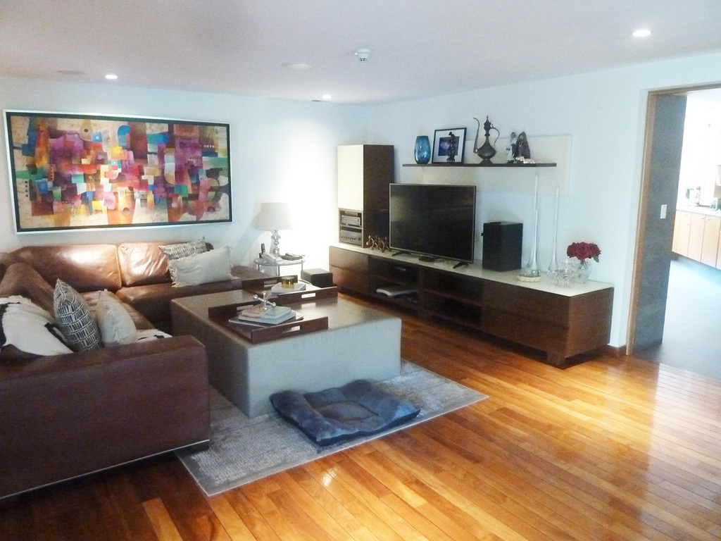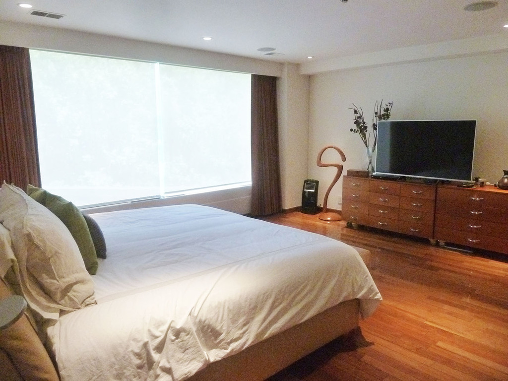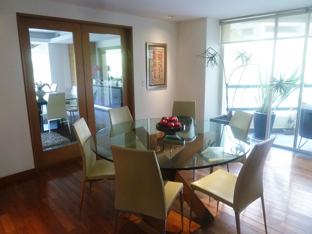Entrada principal, recibidor, baño de visitas, closet de visitas, sala, comedor, con vista verde, family room con ante comedor, se conecta con el comedor y terraza, además despacho con opción a ser la 4ta recámara, amplia cocina integral, 2 despensas grandes, en el pasillo closet de blancos, recámara 1 la principal muy grande con amplio vestidor y baño, regadera y jacuzzi, recámara 2 con terraza, vestidor y baño, recámara 3 muy amplia con terraza, vestidor y baño. En el área de servicio tiene bodega interior, baño de servicio con regadera y 2 cuartos de servicio con closet. El departamento cuenta con calefacción. 3 cajones de estacionamiento con opción de 2 en venta.