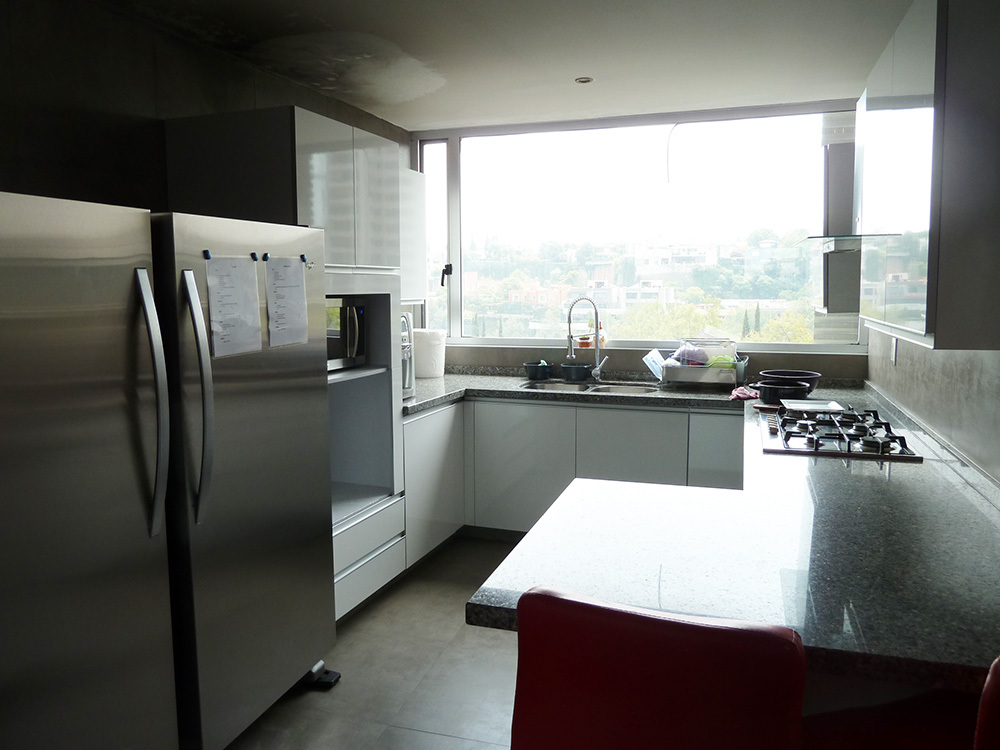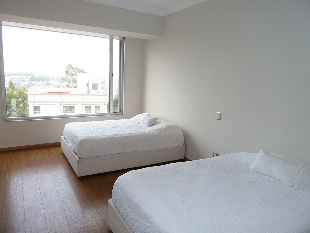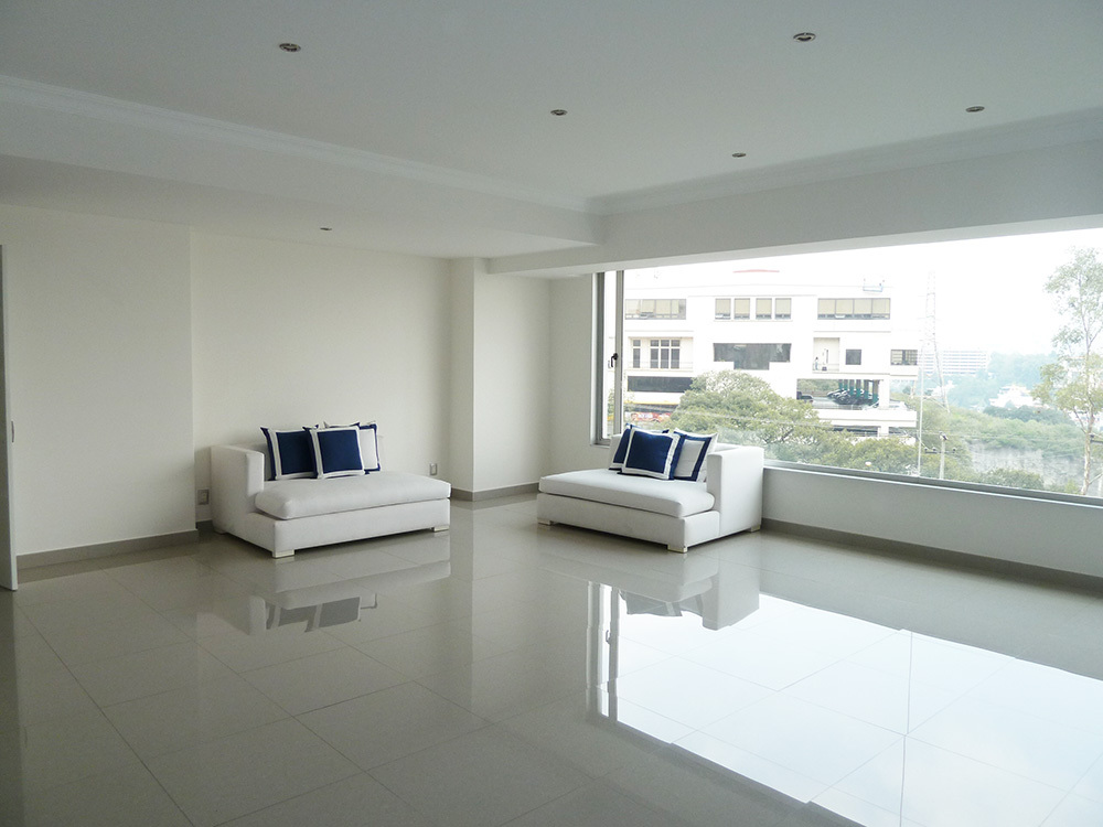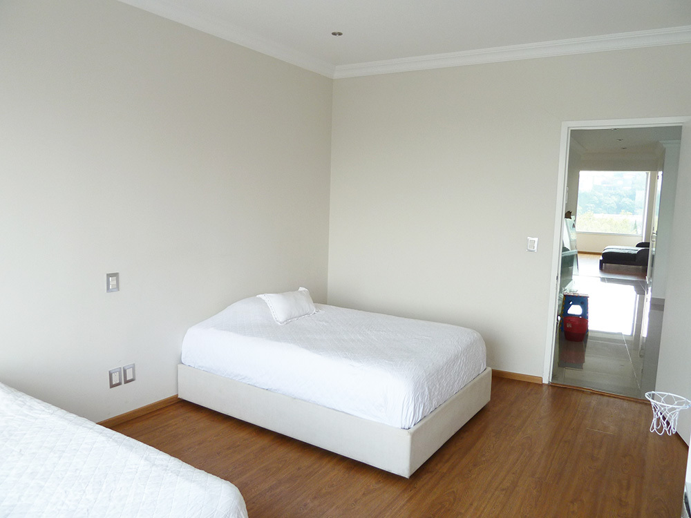 Departamento con excelentes vistas, entrada principal baño de visitas, closet de visitas, amplia estancia, ante comedor, cocina grande, área de lavado muy grande, cuarto de servicio con baño, closet de blancos, sala de t.v., 3 amplias recámaras con vestidor y baño, 3 cajones de estacionamiento y bodega.