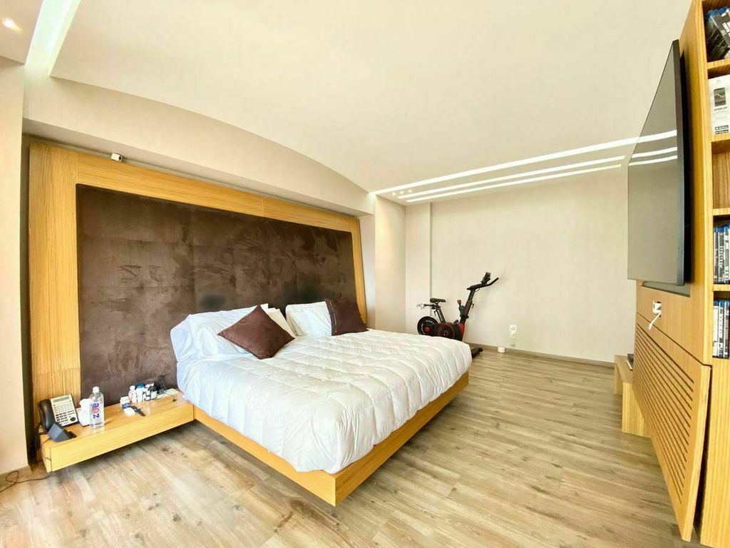 Estancia sala, comedor, cocina, ante comedor, sala de TV, 3 recámaras con vestidor y baño, 3 terrazas, área de lavado, cuarto de servicio con baño, 2 lugares de estacionamiento independientes, bodega de 10 m2.