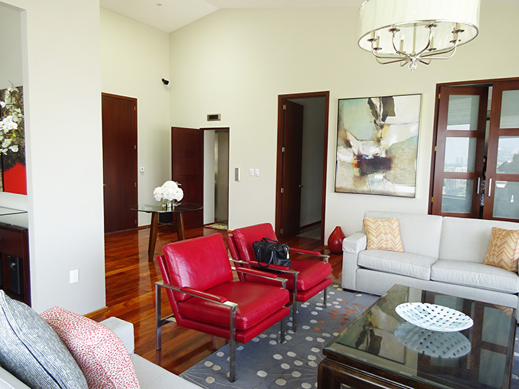 Espectacular Pent House con vista al campo de golf y a la ciudad, elevador directo al departamento, sala, comedor y antecomedor con pisos de madera, amplias terrazas, con toldos automáticos y persianas eléctricas, cocina con isla, cubierta de granito, 3 recámaras con baño, la principal con vestidor, una de ellas con terraza en la recámara y en el baño, sala de tv, oficina grande con terraza, baño y closet de visitas, amplia área de lavado, cuarto de servicio con baño, bodega dentro del departamento, estacionamiento para 4 coches, 2 bodegas.