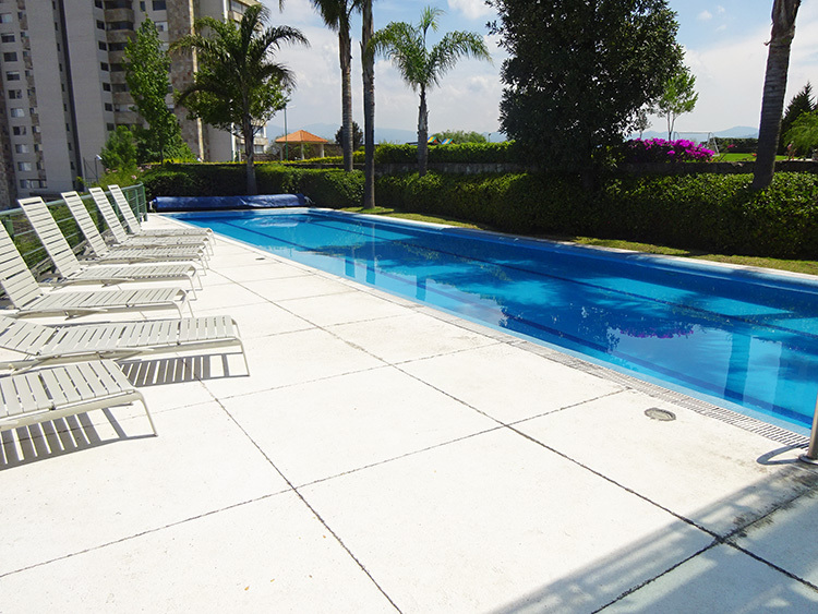 Áreas Comunes: Alberca cubierta con mesas sombrillas y descubierta con camastros, cancha de paddle tennis, gimnasio con baños, jardín muy grande con kiosko y juegos para niños, salón de fiestas con terraza con entrada independiente.
