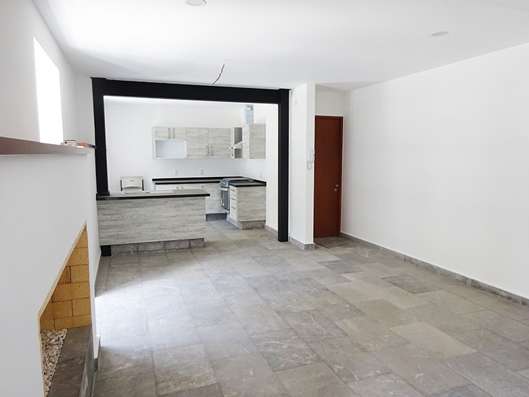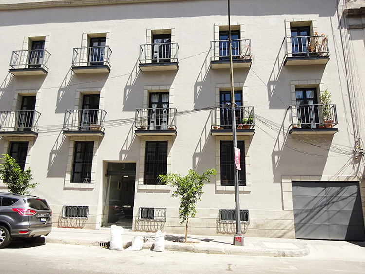Departamento en edificio remodelado con fachada catalogada, piso de mármol en la estancia, piso de madera en las recámaras, cuenta con sala, comedor con chimenea de gas, cocina abierta, 2 recámaras: la primera con closet, afuera tiene baño completo que da servicio también como baño de visitas, la recámara principal con baño completo y closet, las dos recamaras comparten terraza, área de lavado y 2 lugares de estacionamiento.
