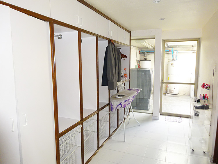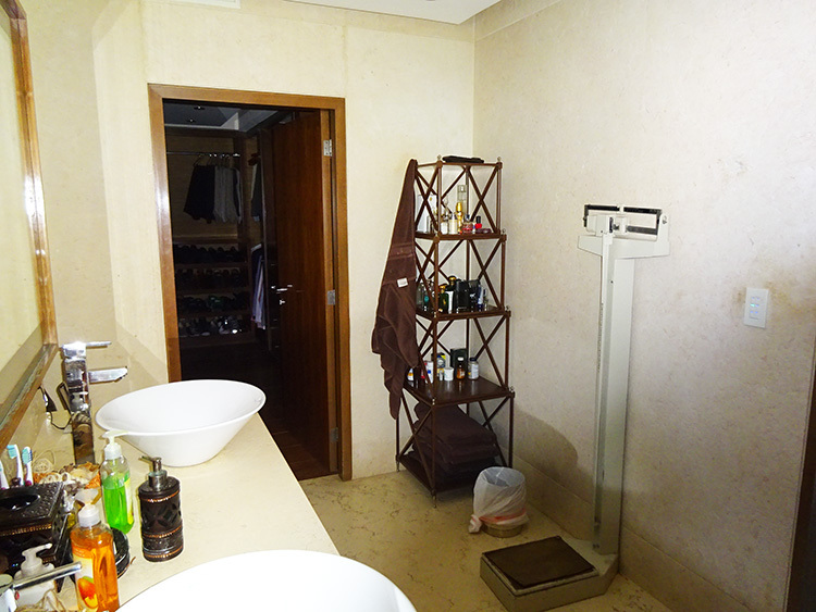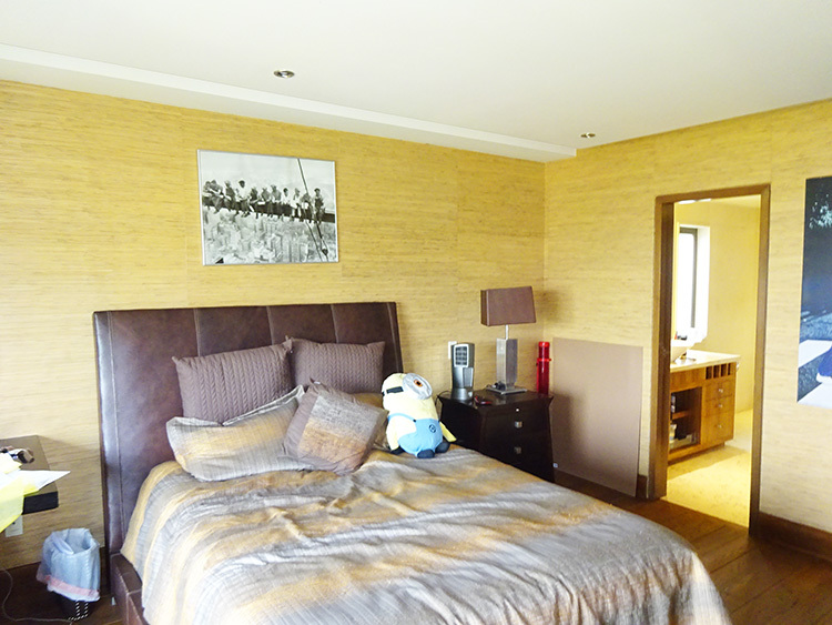 da a la recamara principal y 2 bodegas más, recamara principal con sala, baño con gimnasio tina vestidor, 2 cuartos servicio 1 baño, bodega para maletas patio para lavadora y secadora, casa