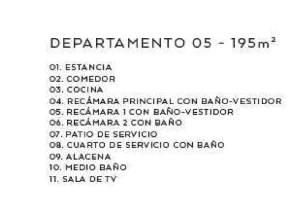 Departamento con finos acabados, sala, comedor, baño de visitas, cocina, sala de tv, 3 recámaras, 1 con closet y baño y 2 con vestidor y baño, área de lavado, cuarto de servicio con baño, 2 lugares de estacionamiento.