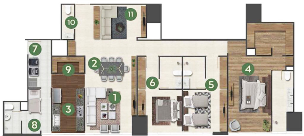 En áreas verdes, pista de jogging, yoga, parque de mascotas, área de fiestas infantiles, fire pits, juegos infantiles, asadores, home office al aire libre, cancha de tenis, cancha de paddle.
