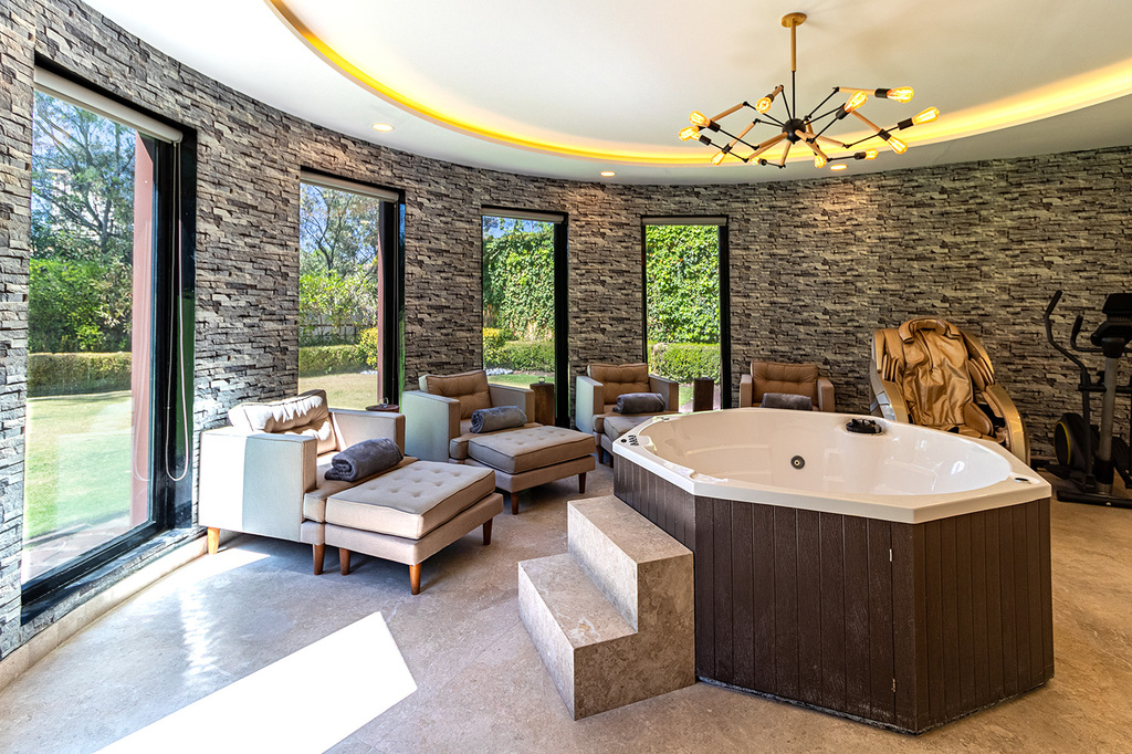 Extraordinaria casa en Lomas Country Club, amplio recibidor con 40 m2 de terraza, comedor, sala inferior a triple altura, bar equipado con refrigerador y máquina de hielo, cocina muy amplia con isla, desayunador, recámara principal con vestidor, baño recámara principal con w.c. inteligente, regadera doble, y tina con t.v., recámara 1 con baño y vestidor, terraza privada, recámara 2, de 2 pisos completos, y baño, cuarto de cine, con pantalla de 200 pulgadas retráctil, oficina amplia con vista al jardín, área de spa con jacuzzi, sauna, baño completo con regadera ludoteca ó gimnasio, cuarto de servicio, cuarto de lavado, amplio jardín, 6 lugares de estacionamiento cubierto, casa totalmente auto generadora de energía (16 paneles solares en azotea).