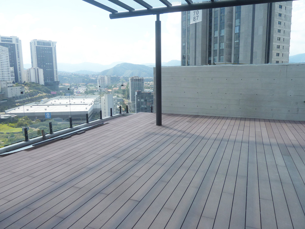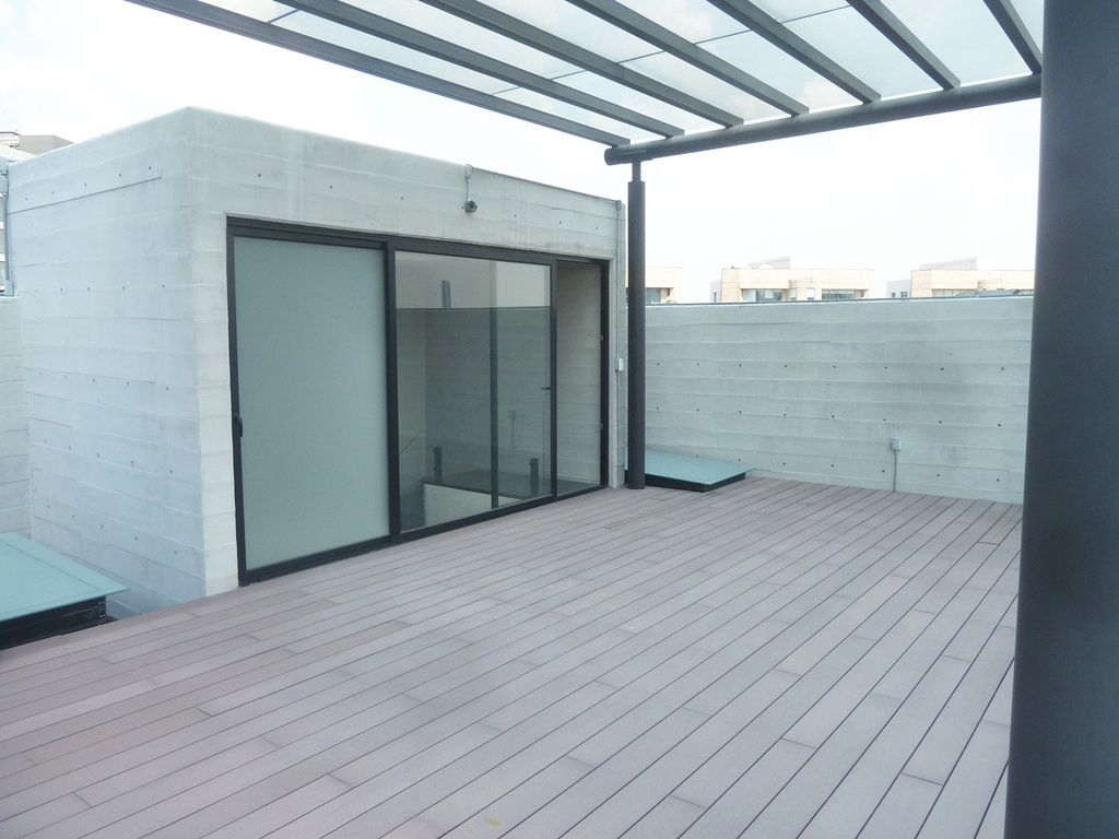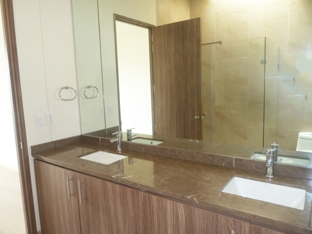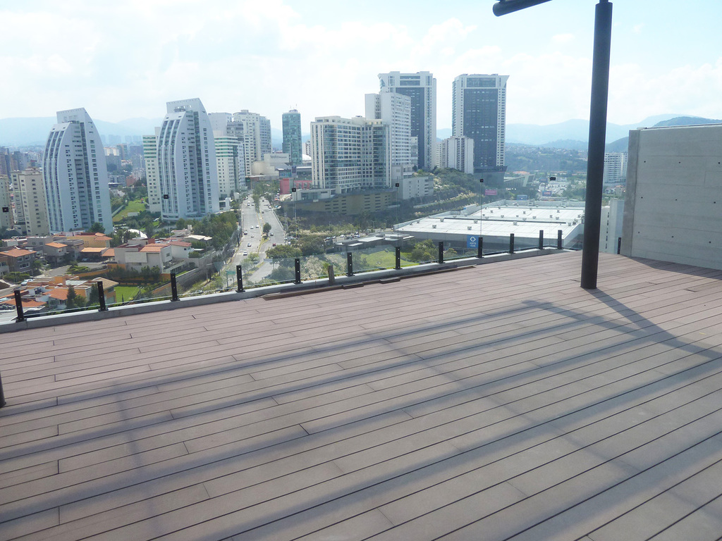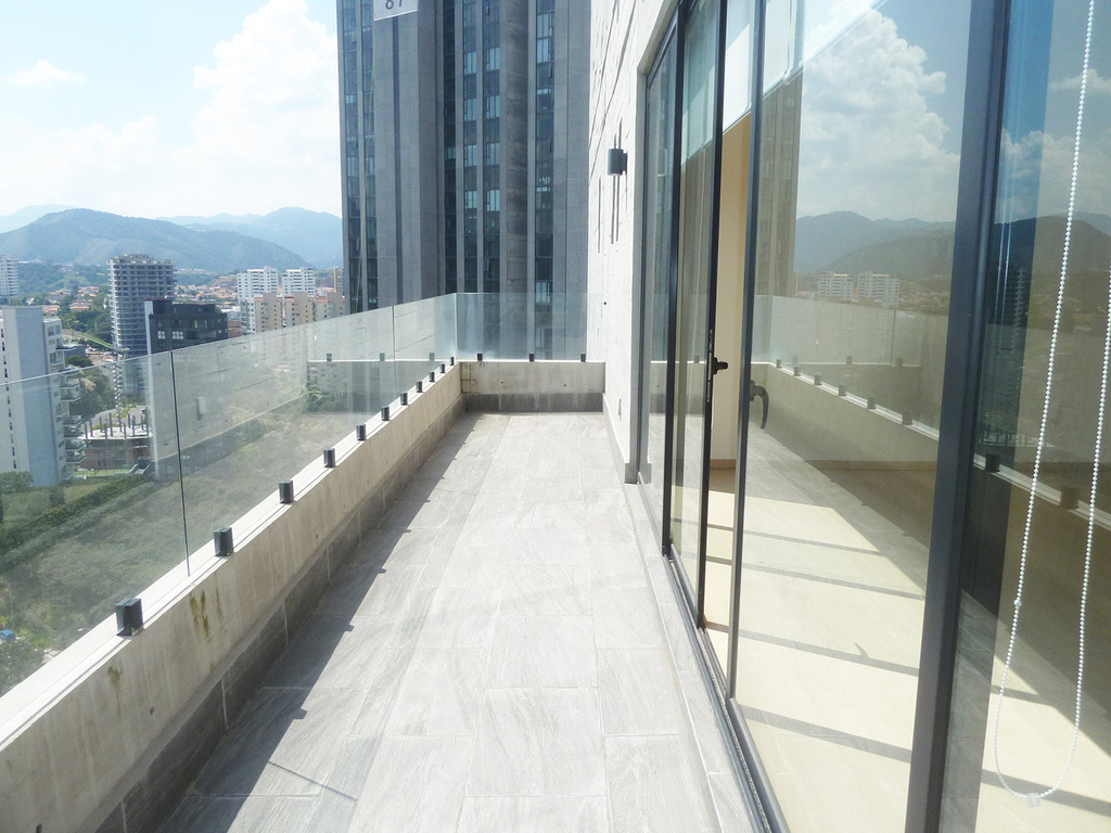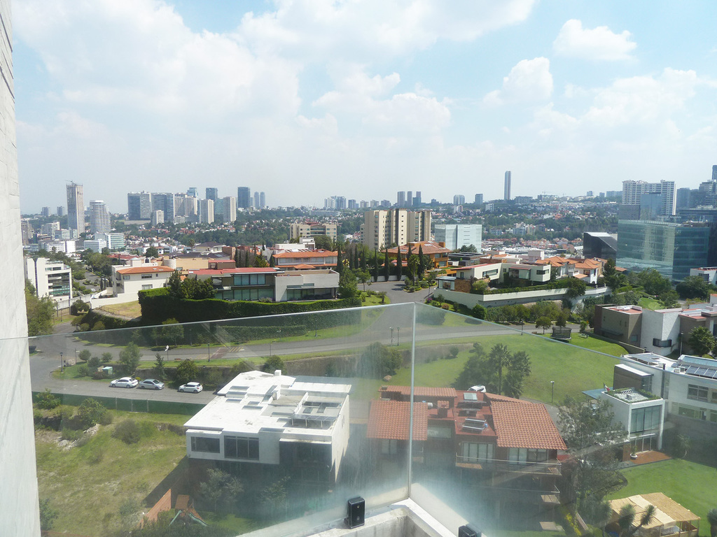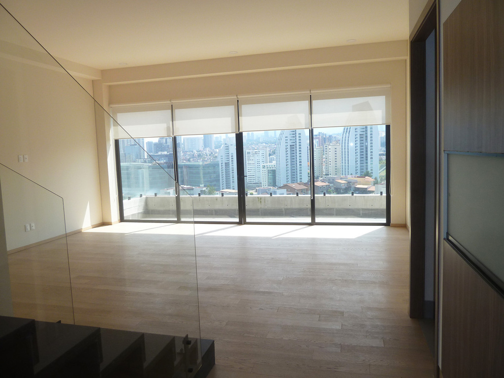 Estrene departamento en 3 niveles, estancia con terraza, baño de visitas, cocina semi abierta con un cristal corredizo que se puede cerrar, área de lavado, cuarto de servicio con baño, en segundo nivel, 3 recámaras, la principal con vestidor y baño, las otras dos con closet, comparten baño y en el tercer nivel amplía terraza de 90 m2 con espectacular vista, 4 lugares de estacionamiento y bodega.
